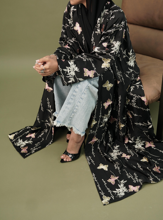LS195 Brown Bisht Cut velvet Summer Abaya
