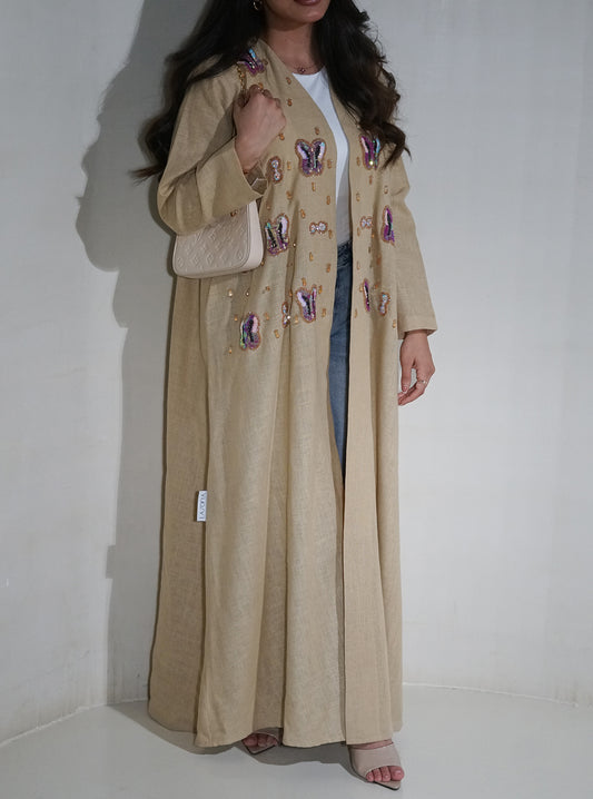 LS127 Beige Acut Modest Abaya