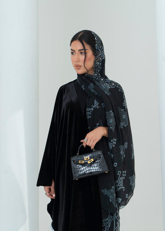 LS194 Black Bisht Cut Summer velvet Abaya (Copy)