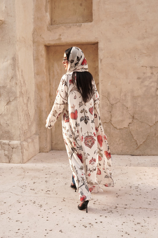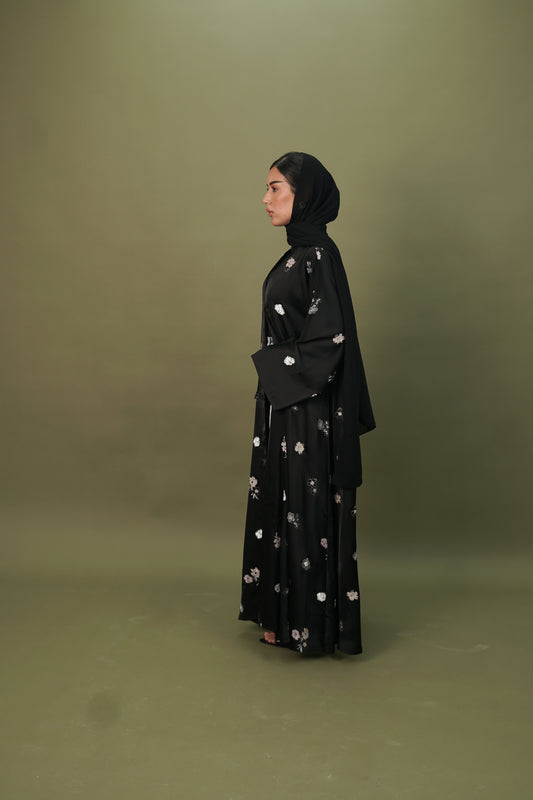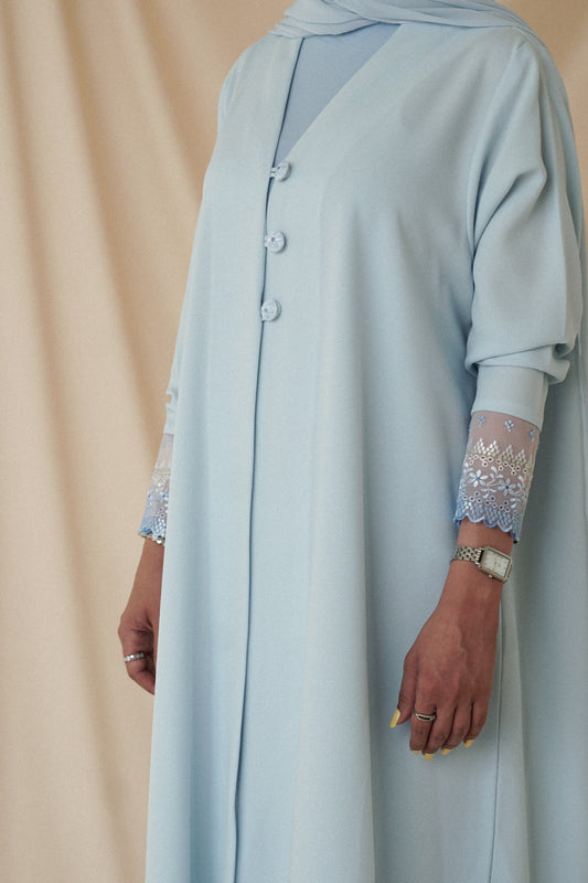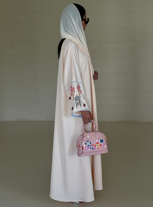 • LS157 Beige  Acut Summary Embroidery Abaya